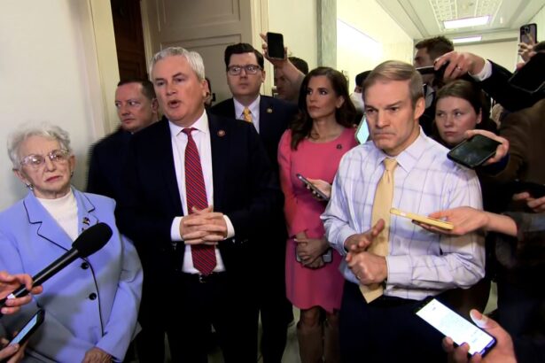 Rep. James Comer, second from left, speaks to the press in the Capitol on Wednesday. CNN House Oversight Chair James Comer and Judiciary Committee Chair Jim Jordan issued a joint…
