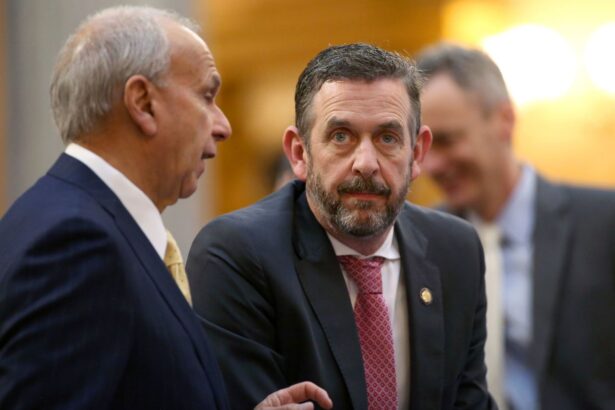 Ohio Sen. Michael Rulli speaks with colleagues at the Ohio State House Senate Chambers in Columbus, Ohio, on February 28. Joe Maiorana/AP/File Michael Rulli will win the Republican primaries for…