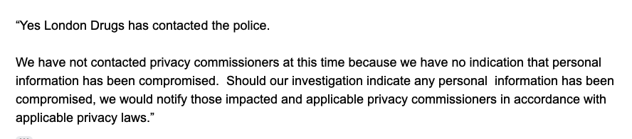 London Drug has also confirmed that it has contracted law enforcement. The company also mentioned that it hasn’t contracted privacy commissioners at “this time” as no indication that personal information has been compromised.